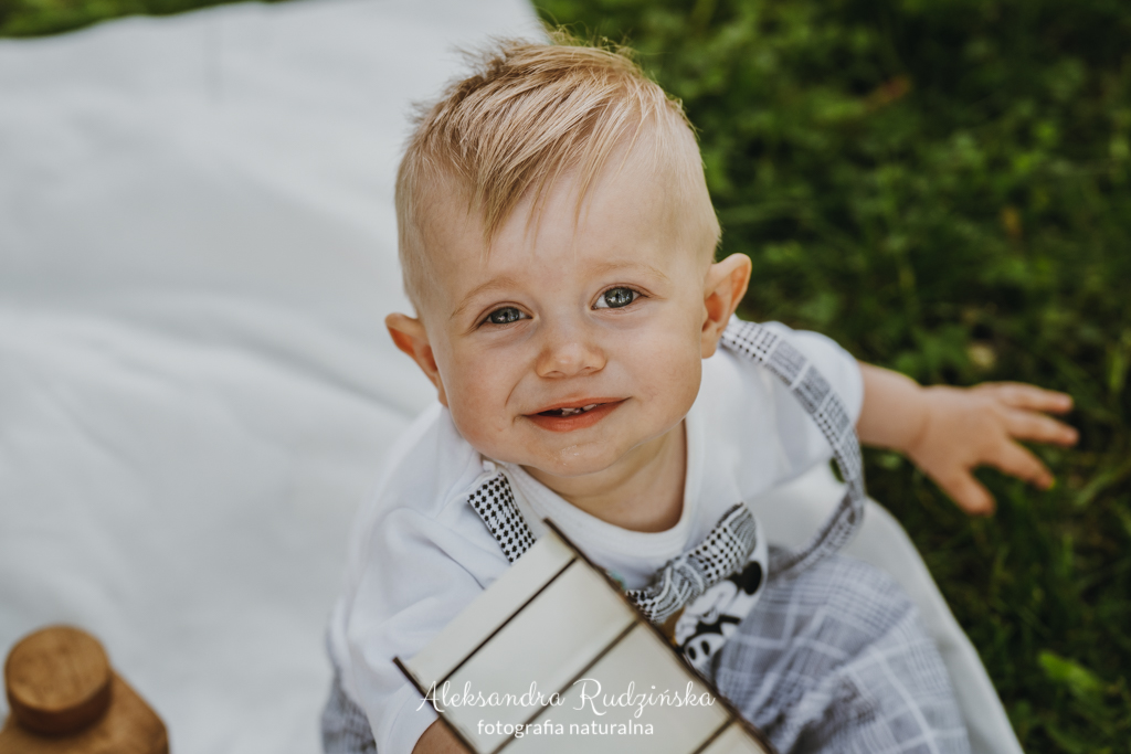 Zadbać aby maluszek był wyspany i najedzony. Wtedy będzie chętniej pozował do zdjęć z rodziną. Miejscem do zdjęć może być przytulny kącik w domu lub na sali albo kolorowy plener. Pamiętajcie o tematycznym torciku, mile widziane są również tematyczne balony czy pluszowe misie. Kolorowe akcesoria i odpowiedni strój malucha dodadzą zdjęciom uroku.